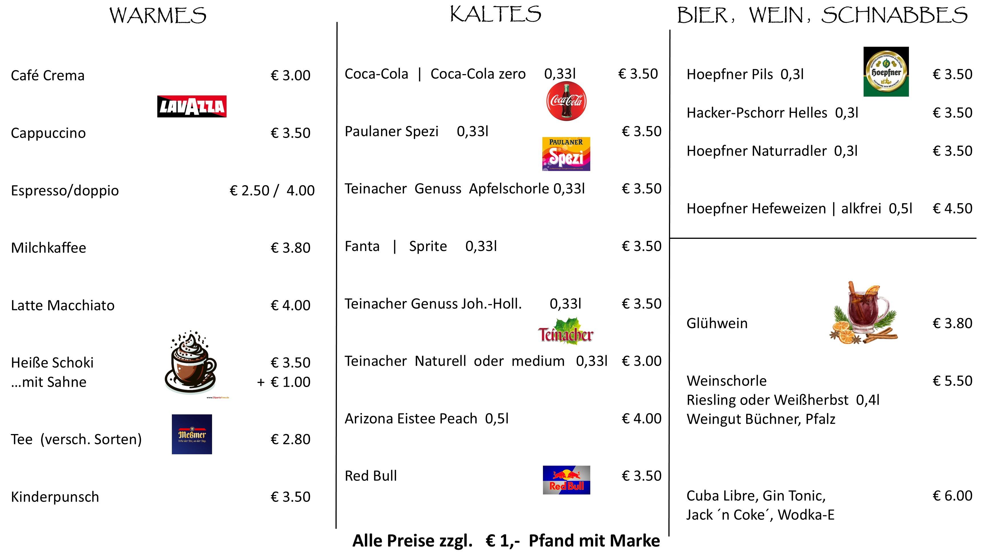 Kommt ca 30 Min vorher vorbei, gebt uns Eure Bestellung durch und wir bereiten alles für Euch vor.